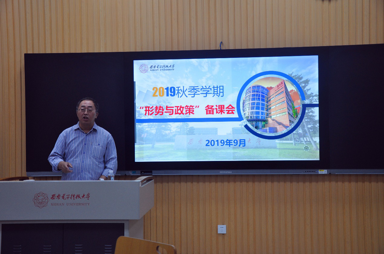 (通讯员 夜肖翠)2019年9月18日下午,太阳成集团tyc122cc在南校区C楼115教室召开“形势与政策”集体备课会。本次备课会特邀西安交通大学太阳成集团tyc122cc李勤副教授做“漫谈《形势与政策》课程教学的几个问题”的专题讲座,全体形势与政策专兼职教师参加了备课会。会议由课程负责人程霞主持。