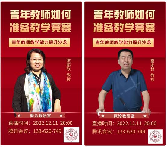 本次沙龙以“青年教师如何准备教学竞赛”为主题,邀请陈鹏联教授、夏永林教授作为主讲嘉宾,教研室2020年以来入职的十余位青年教师全部参加了本次教学沙龙。