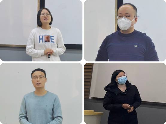 程燕子、刘江、赵秋倩、于彦宾四位青年教师分别以“时刻保持解决大党独有难题的清醒和坚定”、“什么是中国特色社会主义最本质的特征”、“为什么全过程人民民主是最广泛、最真实、最管用的民主”“新的赶考之路要增强忧患意识”为题进行了15分钟的精彩教学展示,向大家汇报了自己的选题、思路、结构、重点等方面。