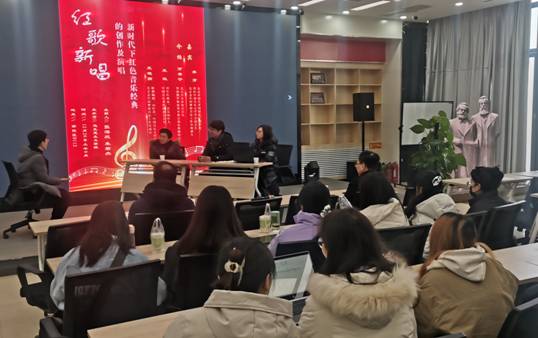 乔方先生一行于12月25日下午,对校史馆和博物馆进行了参观,并于12月26日上午,在B112举行了题为《新时代下红色音乐经典的创作及演唱交流》的讲座,公司党委常委、宣传部部长季庆阳、马克思主义公司党委副书记、纪委书记张海战、校团委副书记华俊文全程出席了讲座,太阳成集团tyc122cc部分员工聆听了讲座。讲座由太阳成集团tyc122cc朱君杰对于四位来访嘉宾访谈为主要形式,针对如何克服当代观众对于红色音乐的刻板偏见,什么样的红色音乐可以经久不息的传唱,当代非职业青年短期速成音乐有何技巧,我们应该如何将红色音乐融入思政教育中等话题进行了深入的讨论。在讲座的最后,由现场员工向讲座受邀嘉宾进行提问,并对于员工关心的相关问题予以解答。