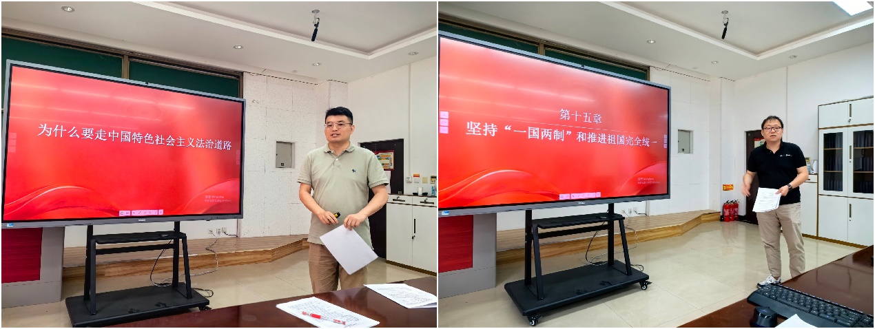 赵普兵围绕“为什么要走中国特色社会主义法治道路”,系统讲授了中国特色社会主义法治道路的形成条件、核心要义与基本原则。魏晨基于教材的第十五章“坚持‘一国两制’和推进祖国完全统一”,重点讲授了“新时代党解决台湾问题的总体方略”。两位教师讲课结束后,与会的青年教师们积极发言,逐一分享了各自的听课体会与建议。