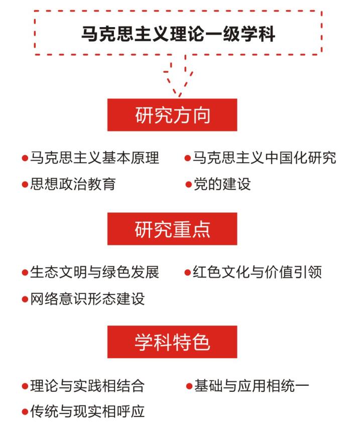 1997年,获批思想政治教育硕士学位授权点,是全国较早获得授权的单位之一;2001年,思想政治教育学科被评为陕西省重点学科;2018年,获批马克思主义理论一级学科硕士学位授权点。目前,马克思主义理论一级学科下设马克思主义基本原理、马克思主义中国化研究、思想政治教育、党的建设四个二级方向。